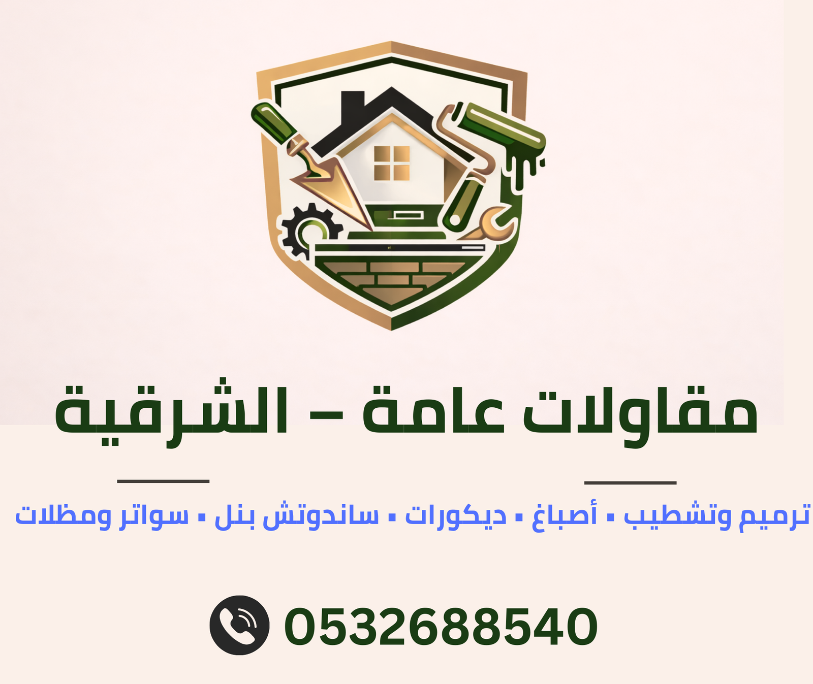 نقدّم خدمات متكاملة في الترميمات، الدهانات، الديكورات، والمقاولات العامة بخبرة وجودة عالية في المنطقة الشرقية.